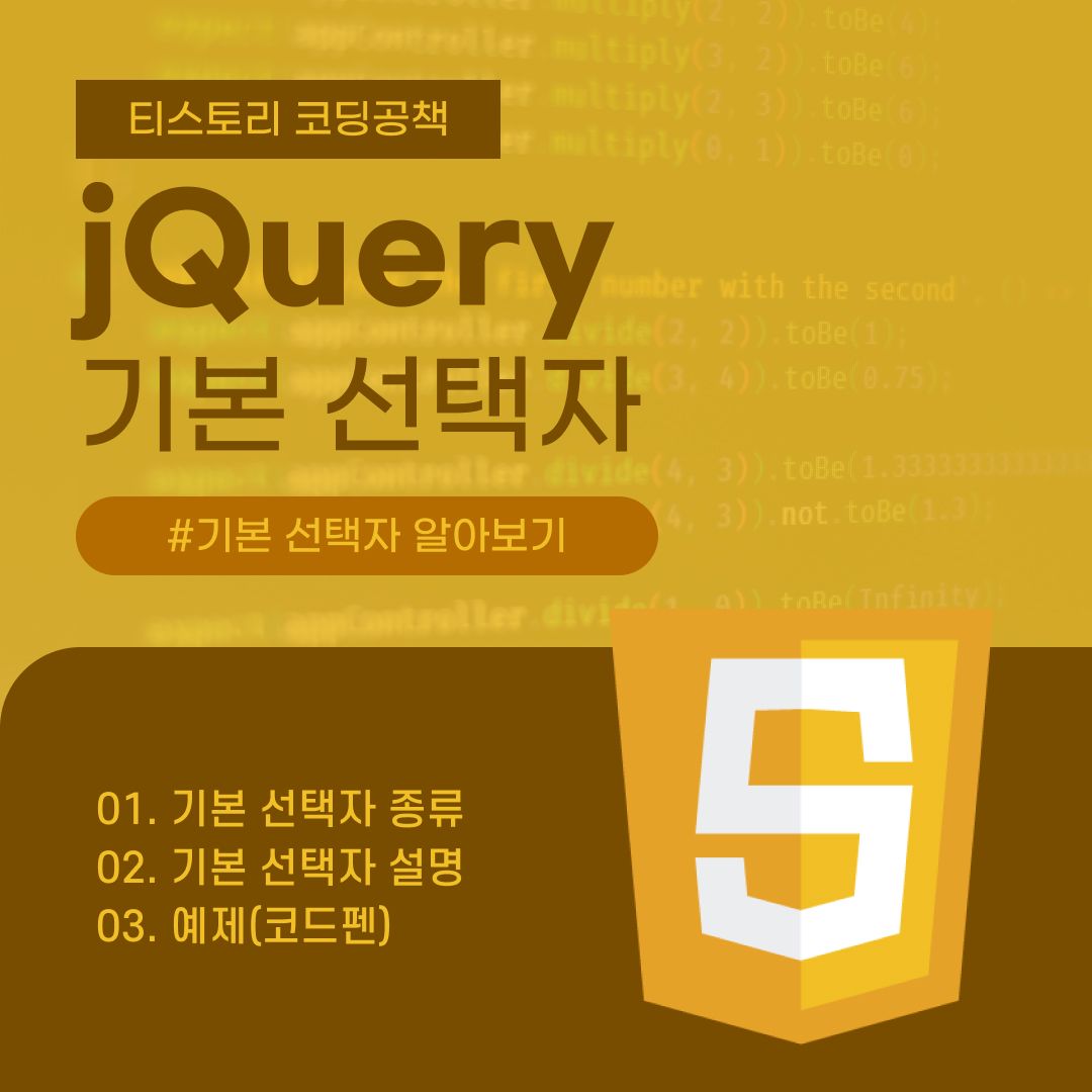 | [JavaScript] jQuery(์ ์ด์ฟผ๋ฆฌ) - ์์ฑ ์ ํ์ (4) | 2022.08.30 |